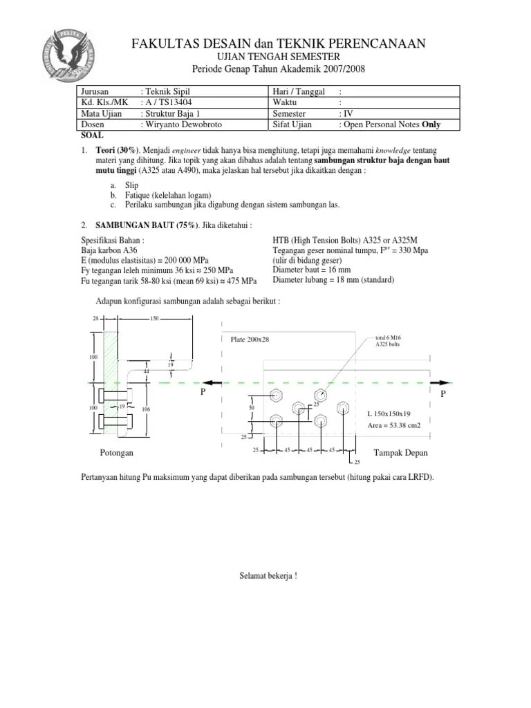 Contoh Soal Uas Struktur Baja 2 : Contoh Soal Struktur Beton Ii Pdf Document - Tegangan lentur soal tegangan lentur 1.