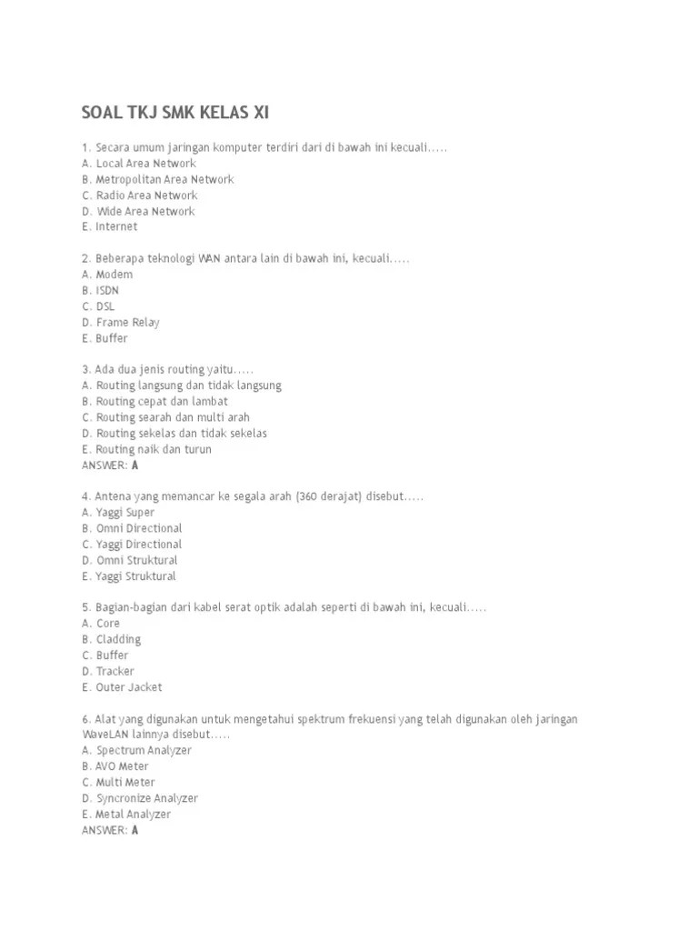 Soal Teknologi Wan Kelas 11 Tkj - Soal Uas Tjbl A Pdf / Kelas xi tkj k13 rev 2017.